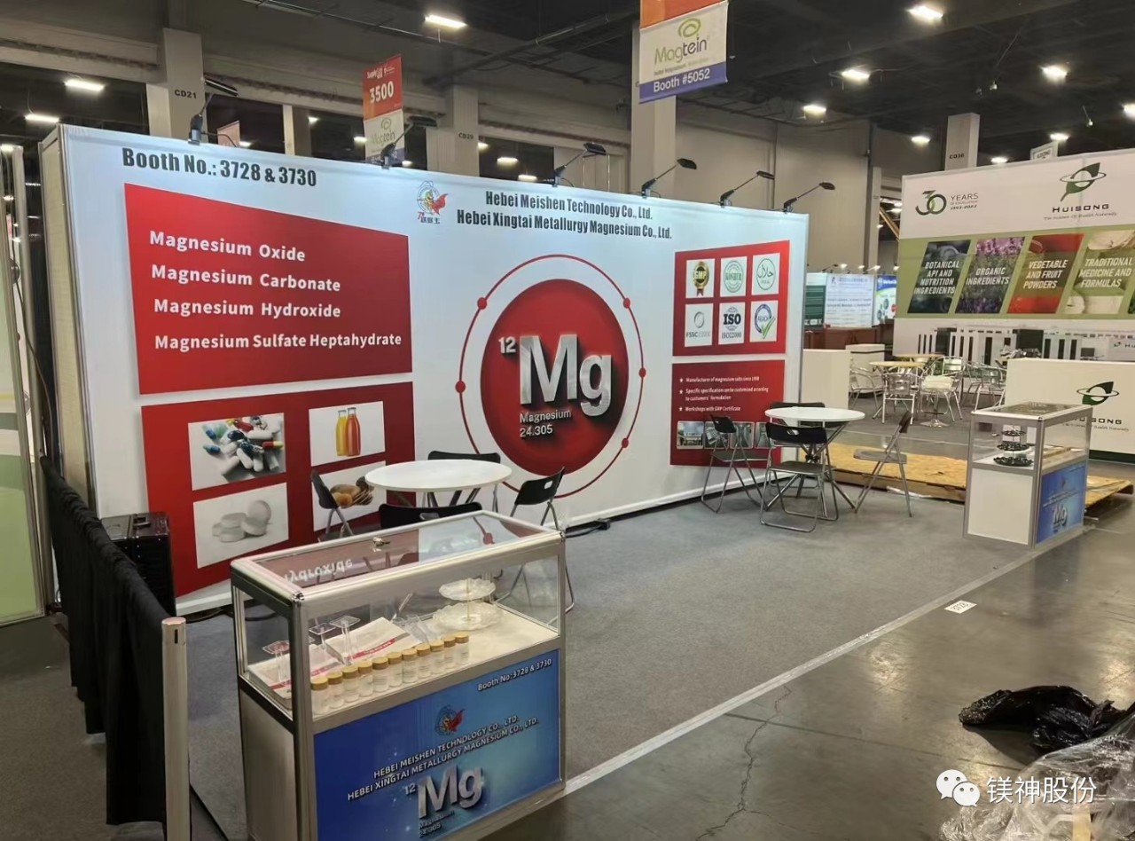 此次展會上,河北鎂神科技股份有限公司(展位號為3728&3730)攜主要產品參展,公司主要展覽產品為醫(yī)藥級、食品級、工業(yè)級的氧化鎂、顆粒氧化鎂、碳酸鎂、顆粒碳酸鎂、硫酸鎂、氫氧化鎂等系列產品.